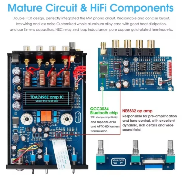 NE5532 op amp responsible for pre-amplification and tone control, with excellent dynamic, rich details and wide sound field.