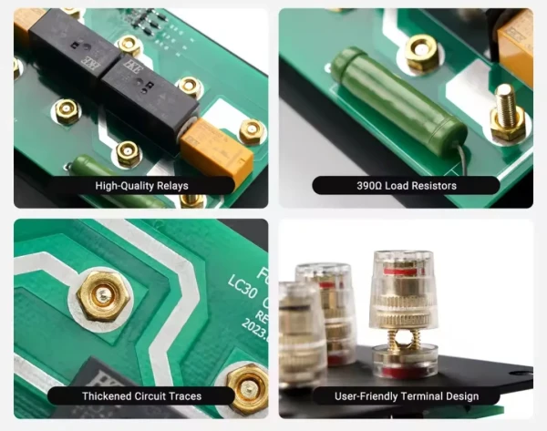 *Superior Components: Integrated with 390Ω protective load resistors, thickened copper foil circuits, premium speaker binding posts, and switching relays, the LC30 ensures virtually no impact or loss in sound quality and supports a maximum 250W power transmission per channel. This allows you to enjoy the purest high-fidelity sound.