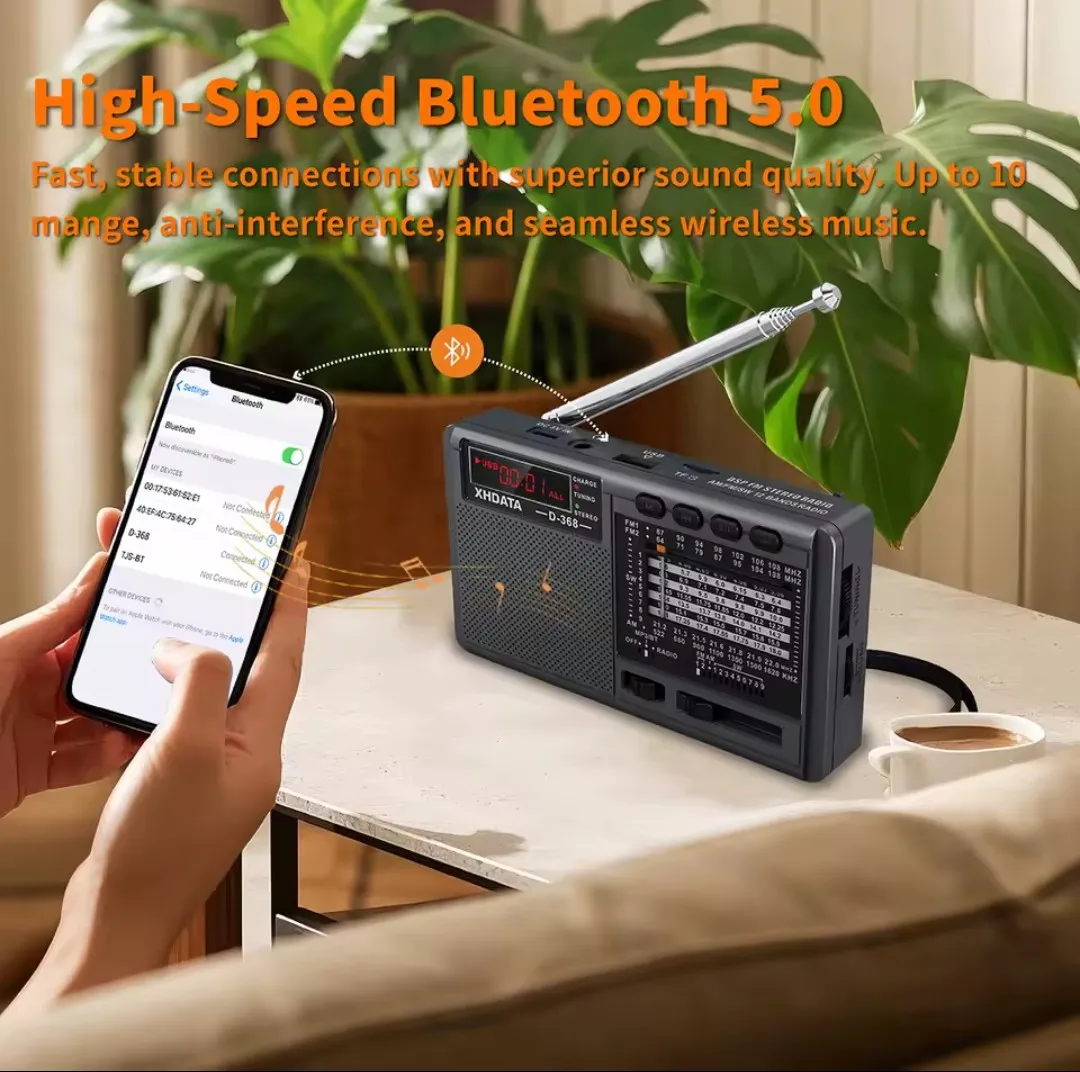 The XHDATA D-368 is a versatile portable radio, now upgraded with 1K radio technology for superior global reception. It delivers excellent sound quality and stable performance across FM, AM, and worldwide shortwave bands, making it your perfect companion for home, outdoors, and travel.