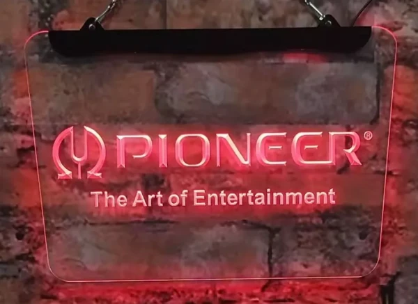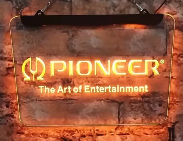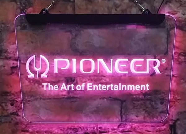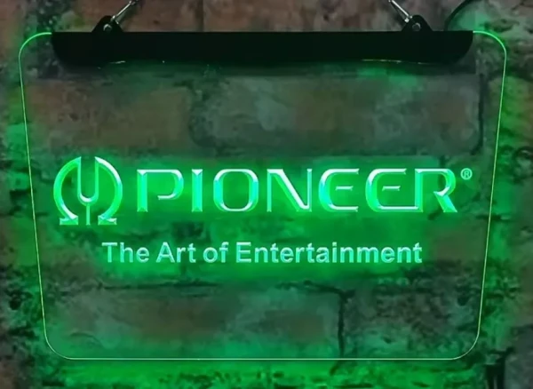 Pioneer The Art Of Entertainment simulated Neon sign is lit by LED's, no glass tubes to break!