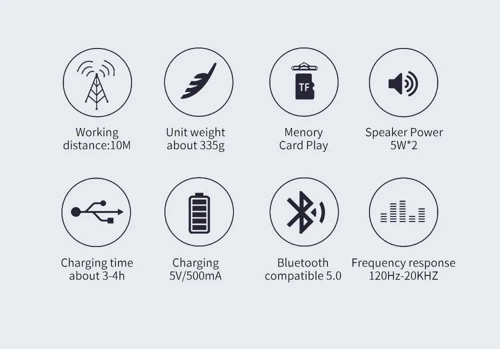 Versatile Playback Modes: Choose from Bluetooth, FM radio, TF card, or AUX inputs for diverse audio options.