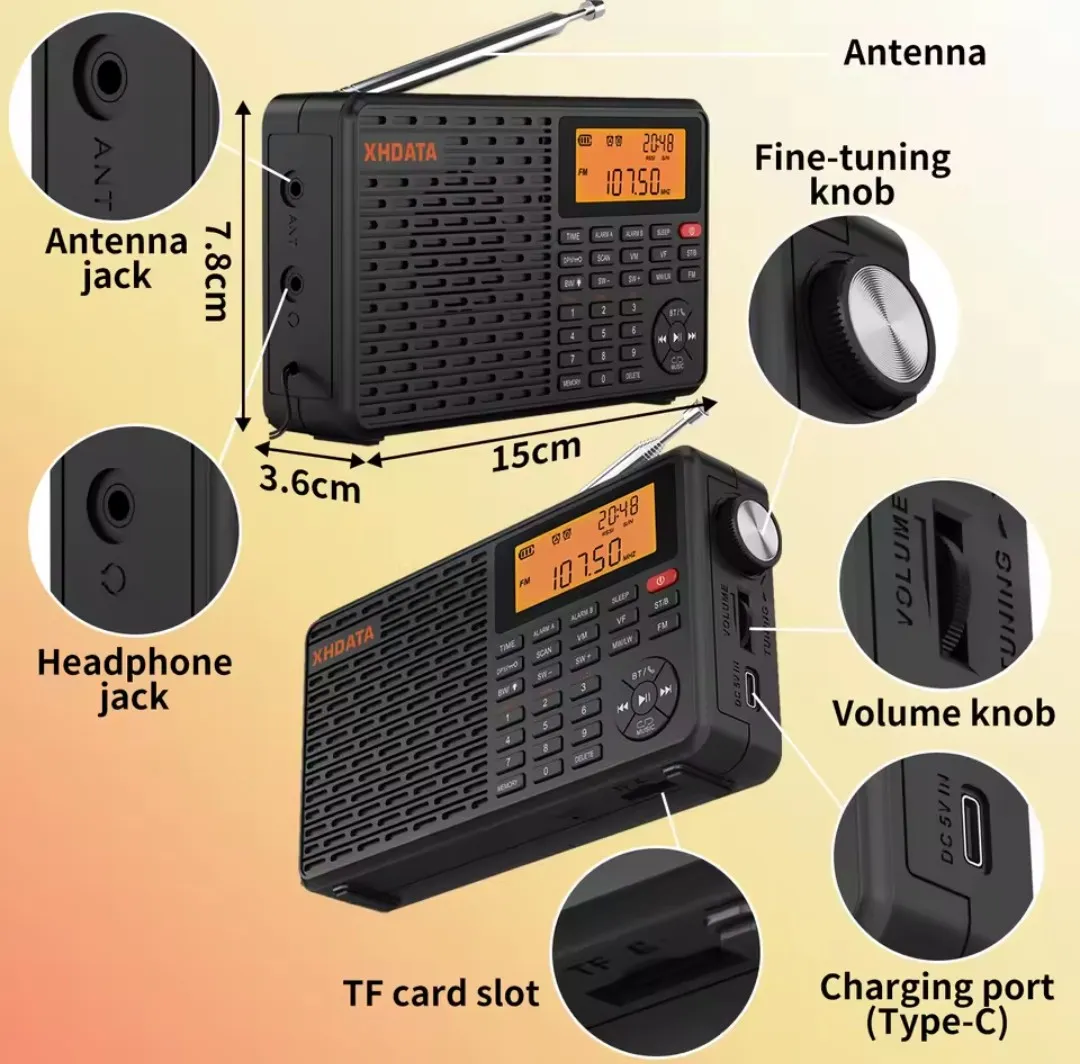 XHDATA D-109 Radio FM Stereo Digital Portable Radio AM SW MW FM Radio Receiver Bluetooth-compatible Radio Support TF Card Player