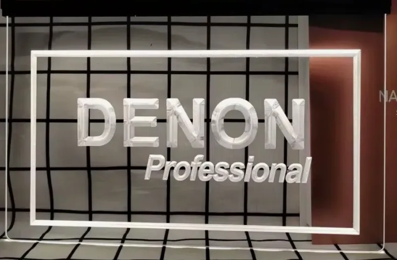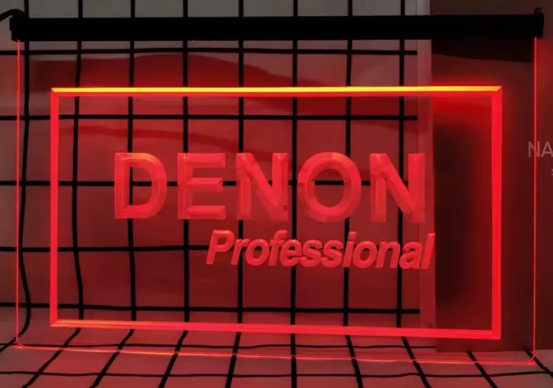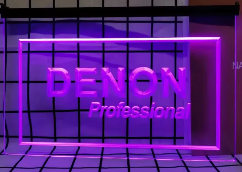 Denon simulated Neon sign is lit by LED's, no glass tubes to break!