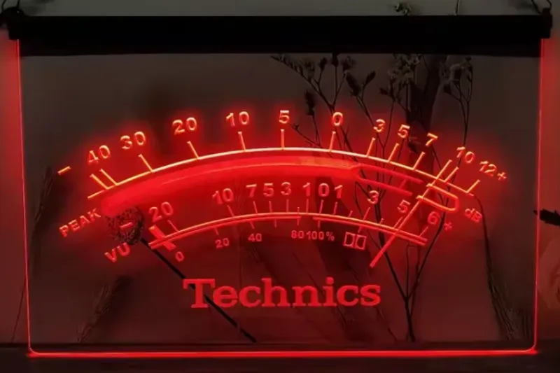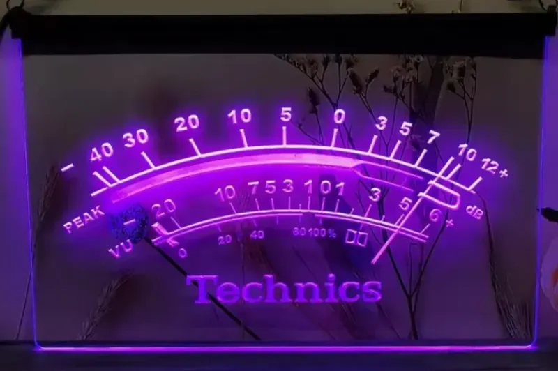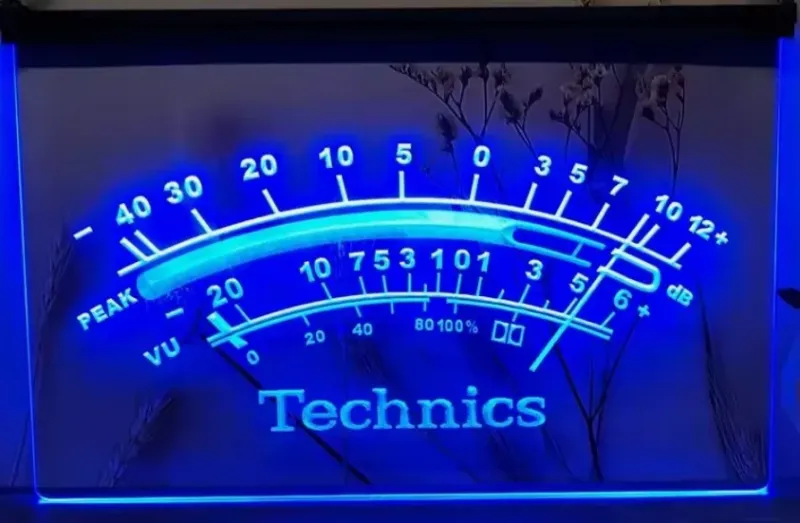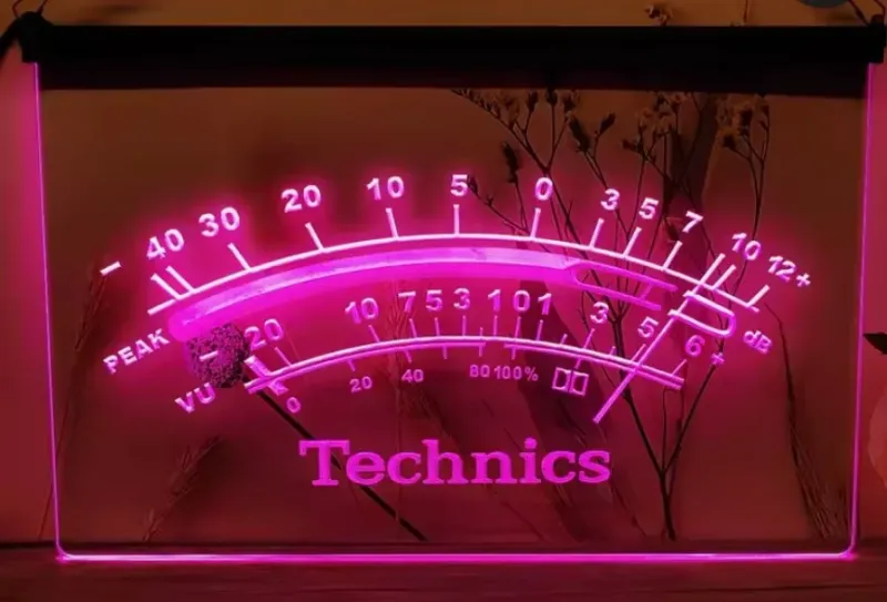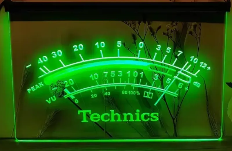 Technics VU Meter simulated Neon sign is lit by LED's, no glass tubes to break!